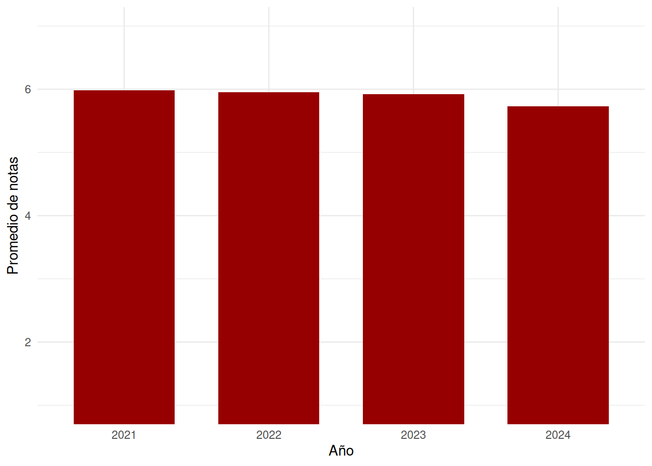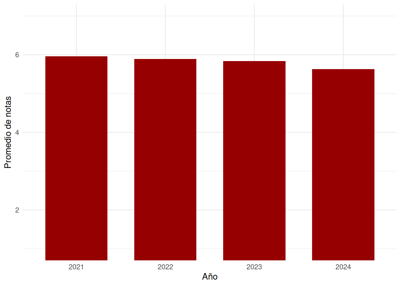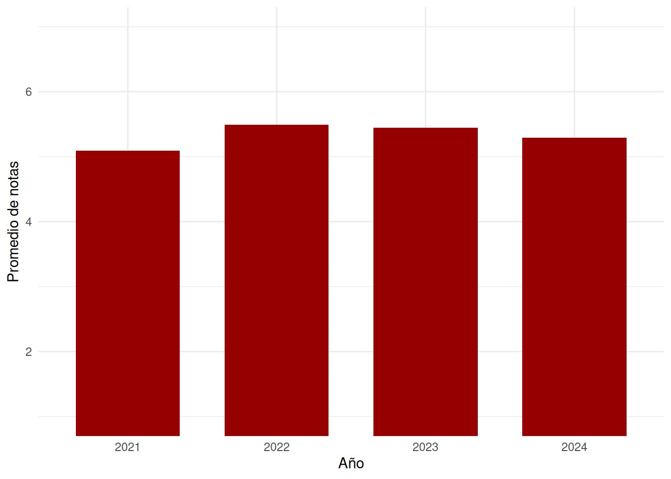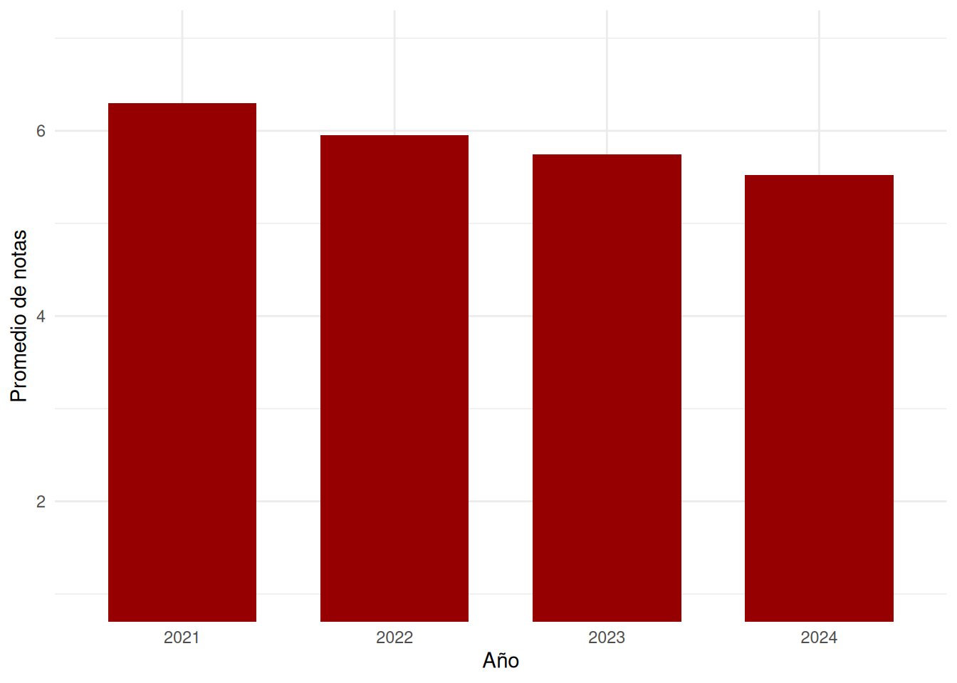 #| fig-cap: Promedio de notas por año 2021 - 2024 Trabajo Social