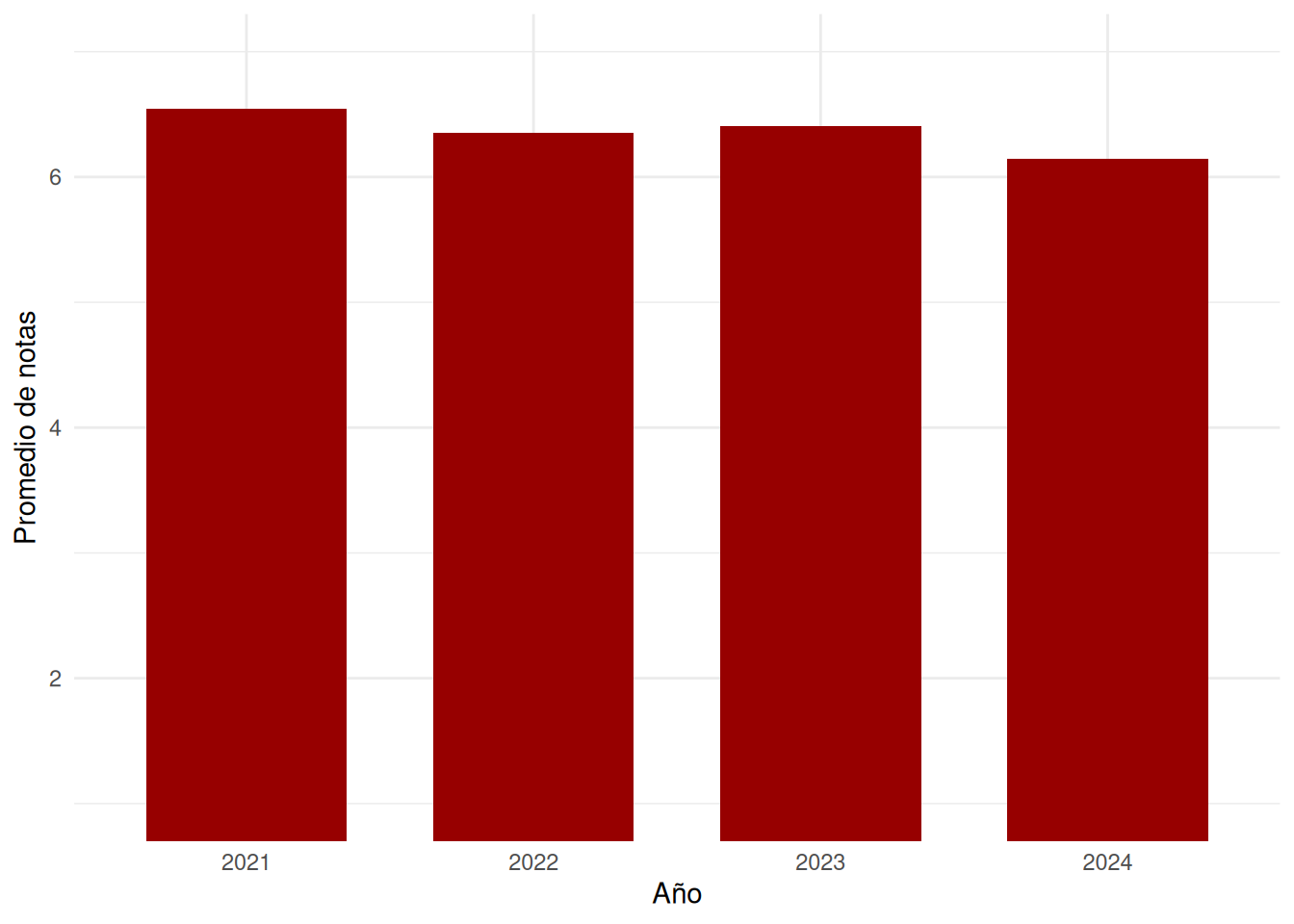 #| fig-cap: Promedio de notas por año 2021 - 2024 Psicología